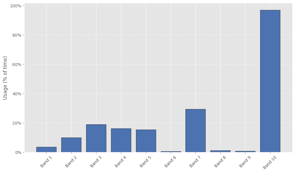 *Band utilization represents the proportion of time intervals in which the band was allocated a non-zero volume.