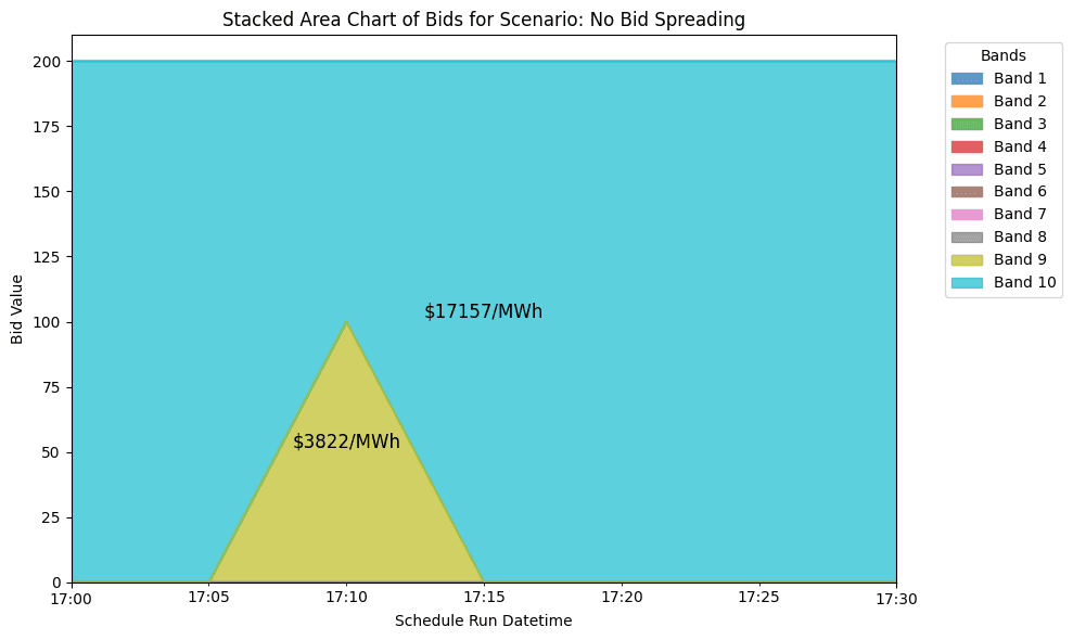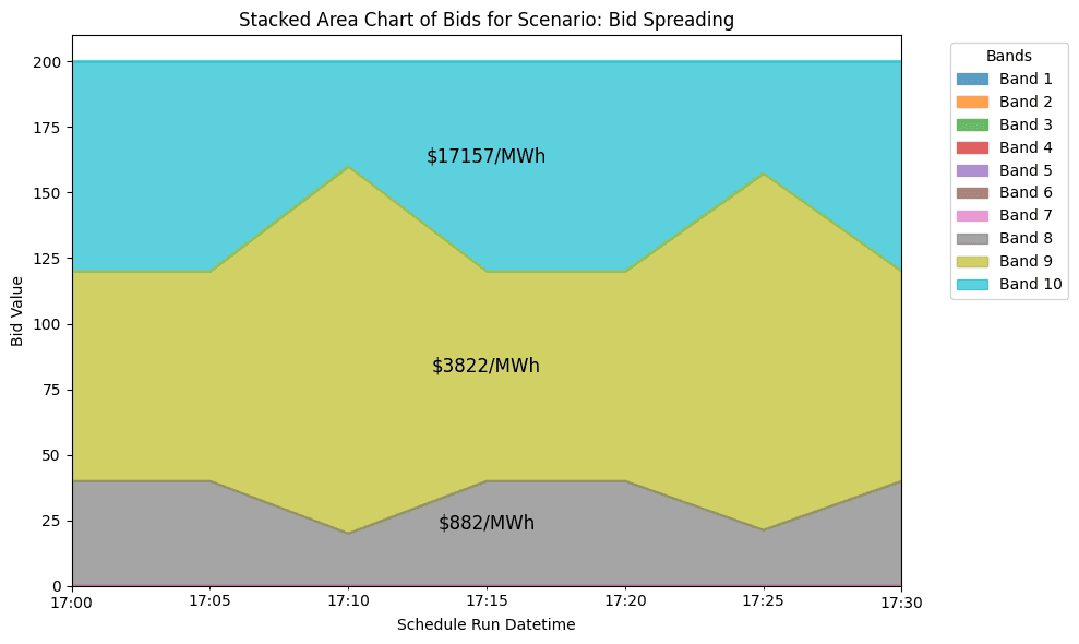 Every dispatch interval (now 5-minute settlement), participants submit price–quantity offers across 10 price bands per unit for each market product, energy, and Frequency Control Ancillary Service (FCAS). Bands must be monotonically increasing and can be updated in the Day-Ahead, consistent with the market rules (Australian Energy Regulator (AER), AEMO). Bands remain fixed for real-time rebidding across the full trading day (4am to 4am), so setting the right price bands for the next day is an important step for market participants.